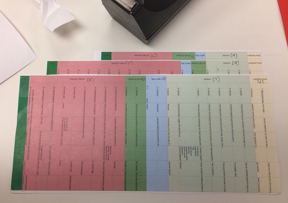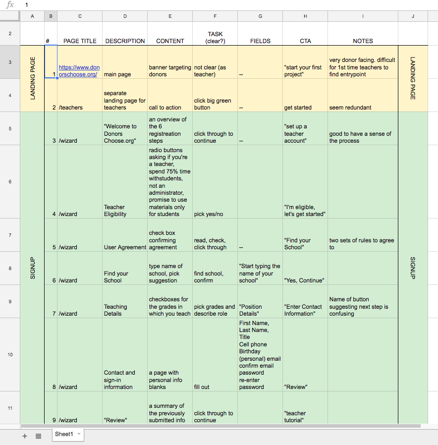 Row Titles: In our case, these were LANDING, SIGN-UP, WELCOME, PROFILE SETUP, PROJECT SETUP, PROJECT LAUNCH.