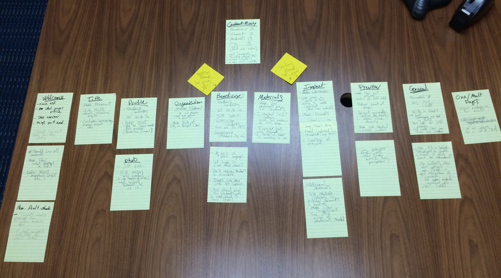 To consider the different ways of organizing application content modules, we conducted a lo-fidelity internal card-sorting exercise.