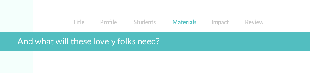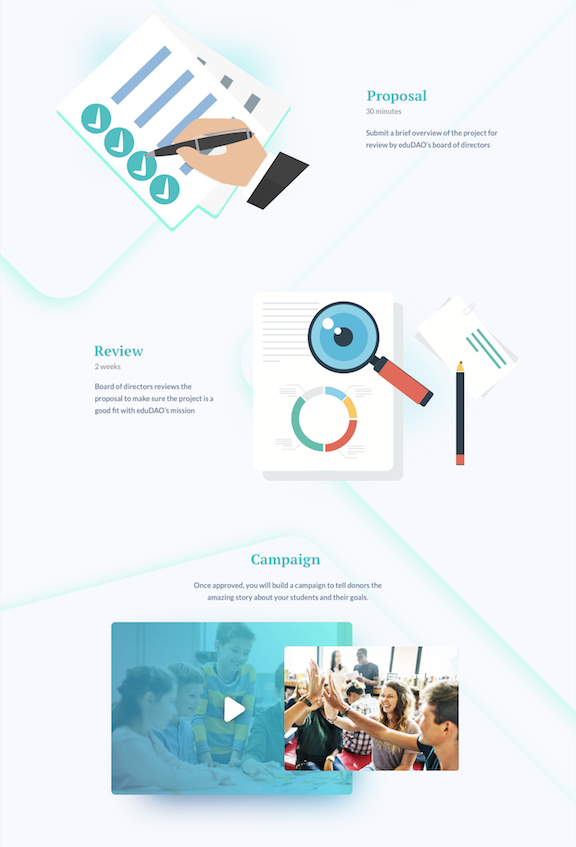 Context-oriented features aim to let users know where they are in the overall process of an eduDAO campaign, as well as keeping a focus on what's important beyond the materials needed for the project: the students and the intended impact.